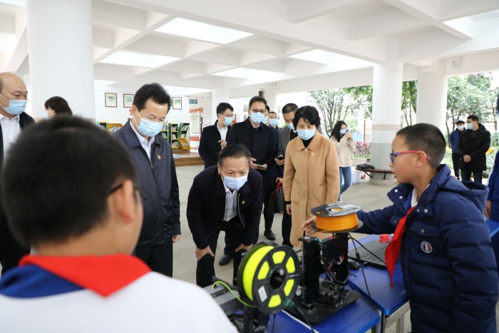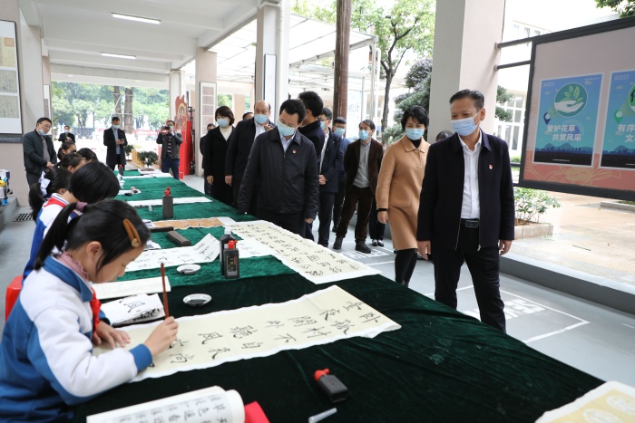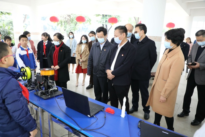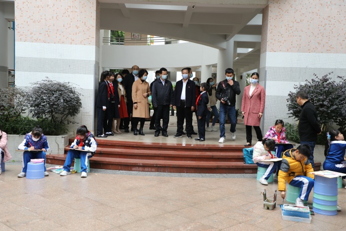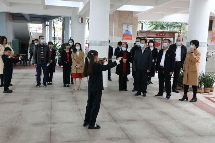 全體與會(huì)人員首先參觀了石岐中心小學(xué)的校園文化和學(xué)生社團(tuán)展示。石岐中心小學(xué)展示了學(xué)校的黨建工作,開展黨史學(xué)習(xí)教育的創(chuàng)新舉措,少先隊(duì)工作,學(xué)生校園生活剪影和社團(tuán)活動(dòng)。從武術(shù)、足球到創(chuàng)客、機(jī)器人、航模,再到合唱、繪畫、書法……23個(gè)社團(tuán)的活動(dòng)精彩紛呈。石岐中心小學(xué)全面貫徹執(zhí)行黨的教育方針,在“打造適合教育”的辦學(xué)理念引領(lǐng)下,從秋季學(xué)期開學(xué)第一天就落實(shí)“雙減”工作,為學(xué)生開設(shè)托管服務(wù)。為進(jìn)一步推動(dòng)“雙減”工作落實(shí)和提質(zhì),學(xué)校為學(xué)生開設(shè)個(gè)性化的社團(tuán)活動(dòng)并扎實(shí)推進(jìn),豐富了學(xué)生的校園文化生活,提升了學(xué)生的個(gè)人綜合素養(yǎng)。這次展演充分展現(xiàn)了學(xué)生朝氣蓬勃、奮發(fā)向上的精神風(fēng)貌。