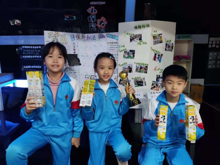 實驗小學(xué)的同學(xué)們熱情高漲、積極參與,組成了兩支參賽隊伍分別參加專題探究項目和STEM項目,其中《保鮮秘法》榮獲專題探究項目一等獎,《新型書桌》榮獲STEM項目二等獎。