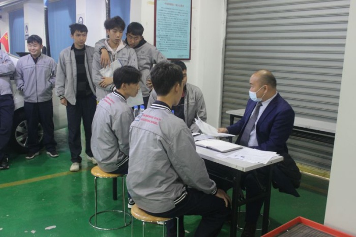 本次供需見面會共有中山市金寧汽車集團、中山市中裕雷克薩斯4S店、中山三聯(lián)豐田4S店、中山市惠通之星奔馳4S店等4家中山汽車服務(wù)行業(yè)的龍頭企業(yè)參加,提供機修、汽車銷售、鈑噴、服務(wù)接待和配件等多個崗位。19IMI班的同學(xué)們認(rèn)真聽取企業(yè)介紹和崗位介紹,結(jié)合自身的需求踴躍投出簡歷,與企業(yè)現(xiàn)場招聘工作人員進(jìn)行真誠交流,他們的優(yōu)秀表現(xiàn)讓企業(yè)十分滿意。其中中裕雷克薩斯的李建軍經(jīng)理對本班的6名云南學(xué)生和有強烈做噴圖意向的李克凡同學(xué)情有獨鐘,這7名學(xué)生現(xiàn)場被企業(yè)聘用并承諾實習(xí)工資約每月2500元。另外,惠通之星和三聯(lián)豐田兩家4S店的人事經(jīng)理對學(xué)校推薦的實習(xí)生直接錄用,金寧集團高端的新能源汽車崗位對學(xué)生更具吸引力。