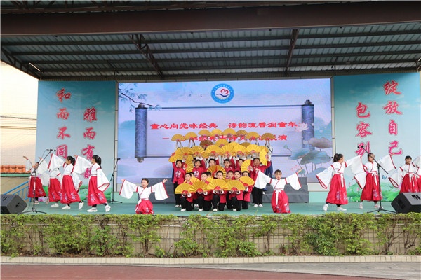 民主小學(xué)是中山市“中華優(yōu)秀傳統(tǒng)文化教育”實驗學(xué)校,始終把中華優(yōu)秀傳統(tǒng)文化教育作為學(xué)校的重點工作之一,創(chuàng)新教育活動的形式,豐富教育活動的內(nèi)容,用經(jīng)典來浸潤孩子們的心靈、滋養(yǎng)孩子們的人生,使中華優(yōu)秀傳統(tǒng)文化教育活動成為學(xué)校的特色品牌。