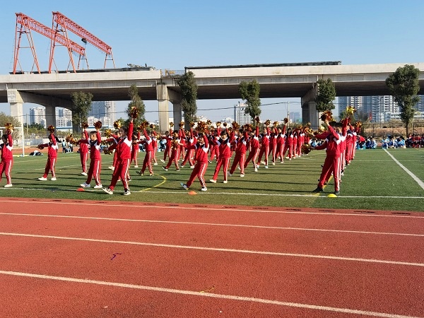 在激動(dòng)的掌聲后,所有人期待的啦啦操表演開始了!一二年級的《天使gogogo》,三四年級的《快樂的歌》,五六年級的《足球?qū)氊悺?,都秀出了各自的特色和精彩。六年級的拉拉操表演秀《足球?qū)氊悺酚葹槲矍?,載歌載舞,有趣的隊(duì)型變換,引來了在場觀眾的陣陣喝彩。