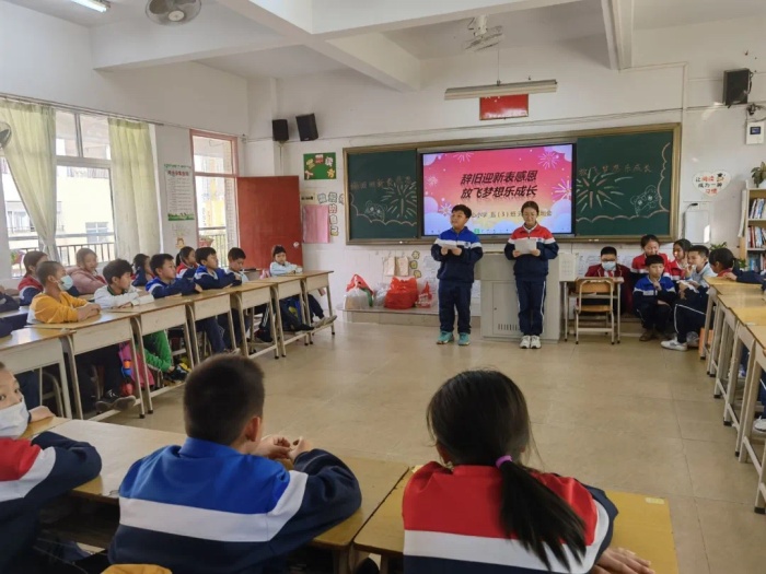 2021年12月31日下午,以班級(jí)為單位開(kāi)展的“辭舊迎新表感恩 放飛夢(mèng)想樂(lè)成長(zhǎng)”主題班會(huì)活動(dòng)正開(kāi)展得如火如荼。各班正副班主任充分發(fā)揮聰明才智,圍繞主題,組織了豐富多彩的辭舊迎新主題活動(dòng)。或講述元旦的來(lái)歷,或暢談新年的祝愿,或組織驚喜禮物交換會(huì),或用畫(huà)筆畫(huà)下新年美好祝福,或由班級(jí)學(xué)生自己設(shè)計(jì)、組織新年聯(lián)歡會(huì),學(xué)生熱情高漲,積極參與,充分發(fā)揮自己的特長(zhǎng),武術(shù)、朗誦、小品、游戲等節(jié)目一一亮相,現(xiàn)場(chǎng)精彩紛呈,笑聲連連。