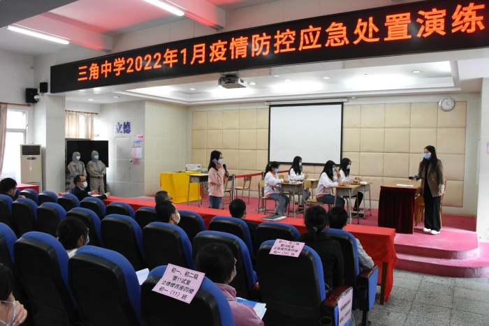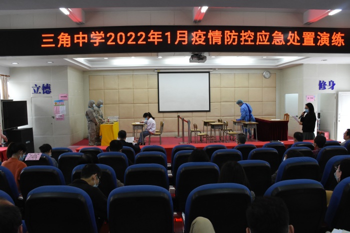 為扎實做好校園疫情防控工作,確保期末考試各項工作的順利開展,1月7日下午,三角中學(xué)舉行2022年疫情防控應(yīng)急處置演練。學(xué)校行政領(lǐng)導(dǎo)、學(xué)??倓?wù)處、醫(yī)務(wù)處相關(guān)人員及全體教師代表參加了演練,三角醫(yī)院劉森副院長蒞臨現(xiàn)場作專業(yè)指導(dǎo)。