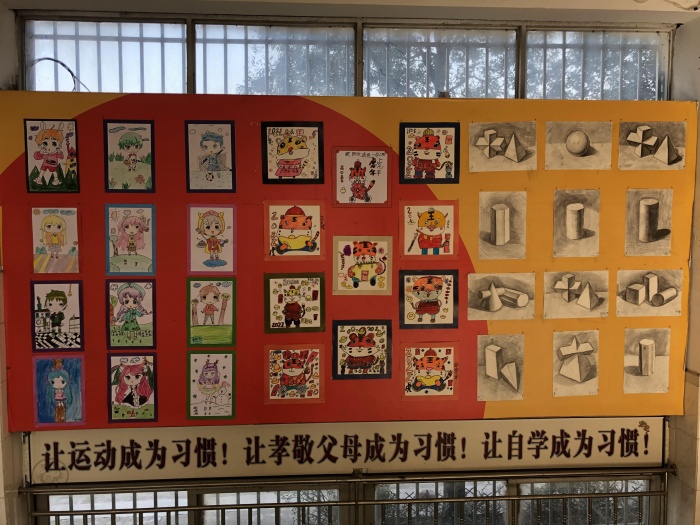 此次書畫展以“繪畫展風(fēng)采,墨香慶元旦”為主題。在全校師生的精心準(zhǔn)備下,共收到繪畫、書法、手工等各類作品近100件,各個興趣小組的學(xué)生以飽滿的熱情,創(chuàng)作出了自己最得意的作品。本次書畫展主要分為三大板塊:繪畫作品、書法作品以及手工立體構(gòu)成作品和輕黏土作品。展出的作品形式多樣,可謂亮點紛呈。