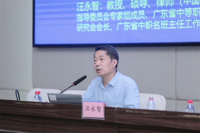 論壇開幕式后,廣東省中等職業(yè)學(xué)校德育研究會會長、廣東省中職德育研究與指導(dǎo)中心主任汪永智教授對班主任們進(jìn)行了“認(rèn)真學(xué)習(xí)落實(shí)黨的二十大精神 譜寫中職班主任工作新篇章”的專題報(bào)告。汪教授從班主任的價值意義和班主任能力水平等方面展開,希望班主任們成長為有高度、有溫度、有廣度、有深度并且具有溝通、協(xié)調(diào)能力的人,為職業(yè)教育的蓬勃發(fā)展做出更新更大的貢獻(xiàn)。
