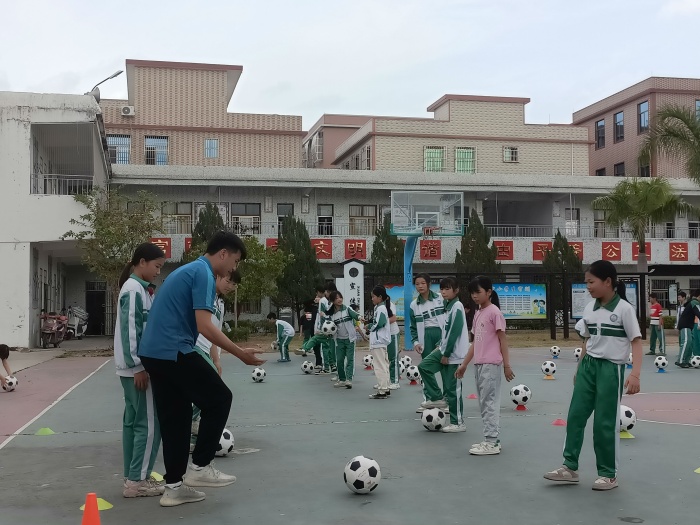 最后是吳康明老師執(zhí)教的特色體育課《足球-腳內(nèi)側(cè)踢地滾球》。吳老師提前布置了上課場地,上課時將學生分好組,講明體育課要求后,以“桃花朵朵開”游戲方式熱身,通過示范引導(dǎo)學生雙腳交替踩踏球、腳內(nèi)側(cè)敲球、腳底踩拉球等球性練習,通過學習,學生基本掌握了腳內(nèi)側(cè)踢地滾球技術(shù),最后在“趕豬跑”的歡樂游戲中結(jié)束了本節(jié)課。本節(jié)課學生在輕松而快樂的氛圍下練習腳內(nèi)側(cè)踢地滾球,既鍛煉了學生的身體,又培養(yǎng)學生對足球的濃厚興趣。
