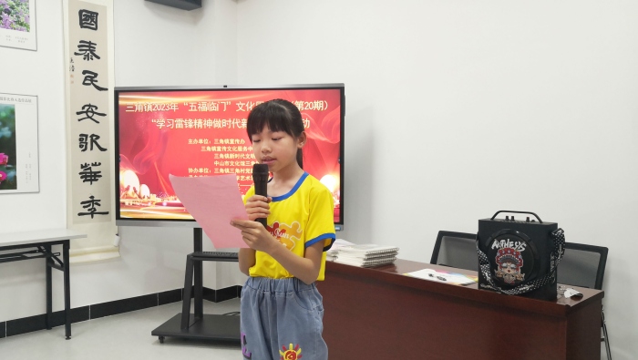 為進(jìn)一步加深社員們對(duì)雷鋒精神的理解,激勵(lì)社員們積極弘揚(yáng)踐行雷鋒精神并在新時(shí)代下賦予雷鋒精神更加豐富而深刻的內(nèi)涵,助力社員們?cè)诶卒h精神的滋養(yǎng)陪伴下更加健康茁壯地成長,3月18日上午,三角鎮(zhèn)三角小學(xué)海鷗文學(xué)社的部分社員在中山市文化館三角鎮(zhèn)分館參加了由三角鎮(zhèn)宣傳辦、三角鎮(zhèn)宣傳文化中心(圖書館)等單位聯(lián)合主辦的三角鎮(zhèn)2023年“五福臨門”文化周活動(dòng)(第20期)“學(xué)習(xí)雷鋒精神做時(shí)代新人”共讀活動(dòng)。