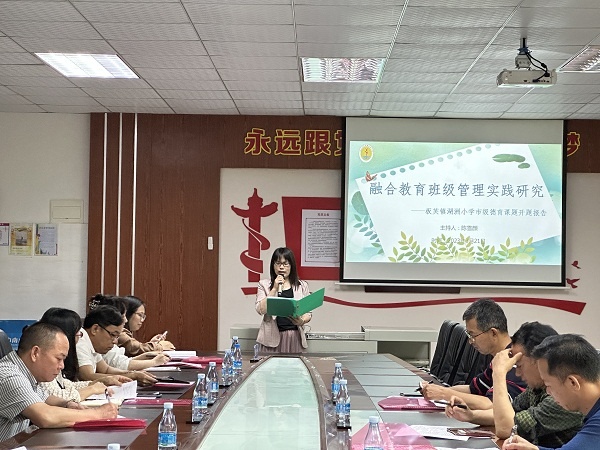 本次活動(dòng)由湖洲小學(xué)德育副主任范丹丹老師主持?;顒?dòng)首先由課題主持人陳雪顏主任作開(kāi)題報(bào)告。陳主任從課題的研究背景和理論依據(jù)、研究框架、研究思路、創(chuàng)新之處以及預(yù)計(jì)成果五個(gè)方面展開(kāi)匯報(bào),擬探討出小學(xué)融合教育的一些新思路、新方法,形成一套行之有效、具有普遍性意義的能力提升模式,以此推動(dòng)融合教育更好地發(fā)展。