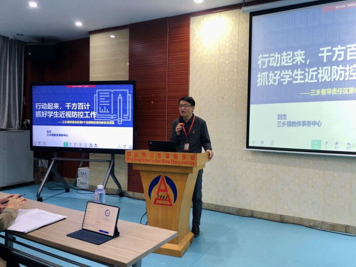 為進(jìn)一步加強(qiáng)學(xué)生視力保護(hù)工作,有效防治和干預(yù)近視。3 月 20 日, 責(zé)任督學(xué)、 中山市學(xué)校健康教育百師宣講團(tuán)副團(tuán)長(zhǎng)劉杰校長(zhǎng)到平東學(xué)校作了一場(chǎng)精彩的近視防控專(zhuān)題講座。講座由任小華副校長(zhǎng)主持,全體教職工參加了培訓(xùn)。