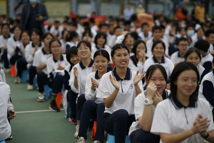 坦洲實驗中學(xué)中學(xué)黨總支書記朱漢業(yè)對全體學(xué)生提出要求和期望,要有明確的目標和計劃,有必勝的信心,志存高遠、奮力拼搏。班主任代表鄺小釵老師鼓勵學(xué)生努力打響中考的第一炮,強調(diào)備戰(zhàn)生地中考要做到抓住機會,堅持不懈,才能到達理想的塔尖。教師代表林德清老師重點介紹了復(fù)習(xí)步驟和方法,希望最后一百天師生齊心,披荊斬棘,全力以赴,書寫歷史。三位老師莊嚴承諾,將時刻踐行“為師生的可持續(xù)、高質(zhì)量發(fā)展奠基”的教育理念,為同學(xué)們的中考備考之旅保駕護航。