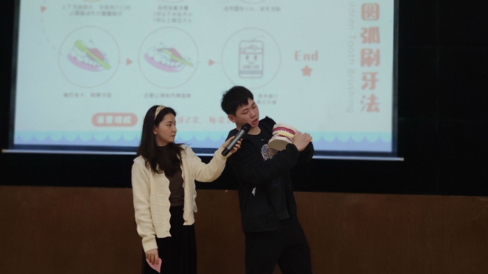 活動(dòng)伊始,新聯(lián)小學(xué)校長(zhǎng)吳肇葵感謝板芙鎮(zhèn)相關(guān)部門為學(xué)校師生帶來(lái)知識(shí)講座。他結(jié)合自身成長(zhǎng)經(jīng)歷告訴學(xué)生口腔保護(hù)以及毒品預(yù)防的重要性,提醒學(xué)生在講座中要認(rèn)真傾聽(tīng)。板芙醫(yī)院口腔科醫(yī)生羅睿用通俗易懂的語(yǔ)言為同學(xué)們科普了豐富有趣的口腔健康知識(shí)。他從口腔存在的普遍問(wèn)題,窩溝齲的發(fā)展過(guò)程及口腔保健等多方面詳細(xì)闡述了口腔保健的重要性,并強(qiáng)調(diào)生活中要養(yǎng)成早晚刷牙、飯后漱口等良好的好習(xí)慣。然后,他還通過(guò)圖文和實(shí)物模型結(jié)合的形式為孩子演示正確的刷牙方式,同學(xué)們聽(tīng)得津津有味,跟著羅睿醫(yī)生的步驟逐步學(xué)習(xí)正確、科學(xué)的刷牙方式。