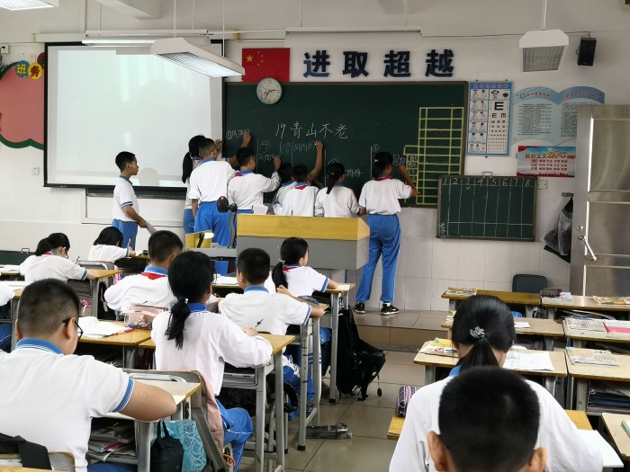 第一節(jié)課,各年級(jí)在備課組長(zhǎng)的組織下,圍繞科組的研討主題,利用小組合作的形式開展“一師一課,一課一議”教學(xué)研討活動(dòng)。一年級(jí)許桂玲老師為大家?guī)?lái)了活潑有趣的《江南》;二年級(jí)陳綺琪老師帶領(lǐng)孩子們共同領(lǐng)略《日月潭》的美麗景色;四年級(jí)的伍尚金老師用詼諧的語(yǔ)言帶領(lǐng)大家學(xué)習(xí)了《蟋蟀的住宅》;在劉艷玲老師的帶動(dòng)下,五(4)班的孩子都沉浸在《父愛之舟》的感動(dòng)中;在王紅亞老師的引導(dǎo)下,六(4)班的孩子在《青山不老》的學(xué)習(xí)中,感受老人與青山共存的精神,讓綠色流進(jìn)每個(gè)孩子的心中。