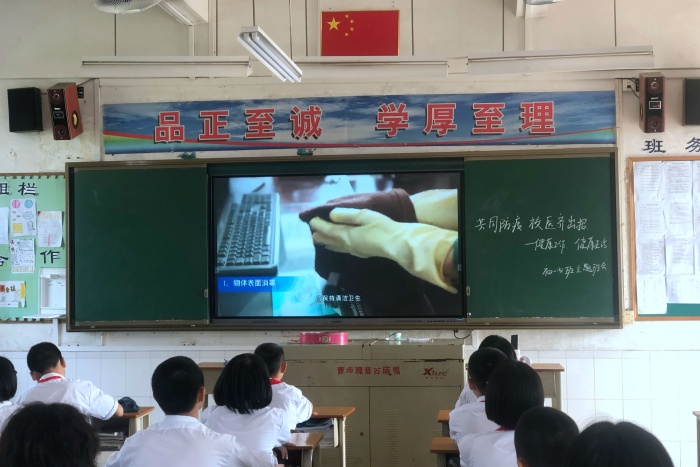 通過視頻的學(xué)習,同學(xué)們了解到,消毒對常態(tài)化防疫的生活來說是非常重要的。在日常的生活中,同學(xué)們不僅要重視對地面以及物品的消毒,還要注意對飲水機、垃圾桶進行定期的消毒,此外個人的衛(wèi)生防護也是非常重要的。