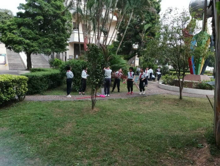 活動(dòng)在午練時(shí)進(jìn)行。三年級(jí)的孩子們帶上手套、掃把、垃圾鏟和垃圾桶興高采烈地來(lái)到花園里。年級(jí)組長(zhǎng)韋丹麗老師向同學(xué)們?cè)敿?xì)講述了這一次活動(dòng)的主要任務(wù)和勞動(dòng)分工后,同學(xué)們聽(tīng)從老師的指揮,彎起腰,蹲下去,擼起袖子,三兩成堆,邊說(shuō)邊循著有草的地方,用力抓緊草根,使勁拔,把一棵棵影響校園美觀的雜草除掉。三年級(jí)的孩子雖然小小年紀(jì),但他們不怕臟,不怕累,不懼怕地上的昆蟲和螞蟻,認(rèn)真地完成老師安排的任務(wù)。話動(dòng)中,同學(xué)們個(gè)個(gè)干勁十足,不忽視每一個(gè)細(xì)節(jié),不放過(guò)每一個(gè)死角,一棵棵雜草被同學(xué)們一雙雙有力的小手鏟除掉。同學(xué)們邊說(shuō)邊笑,熱火朝天地快樂(lè)勞動(dòng)著,此時(shí),安靜的校園被孩子們勞動(dòng)中的歡聲笑語(yǔ)感染著,洋溢著活力的氣息。芭蕉樹(shù)掉下的枯枝,又長(zhǎng)又大,很難處理,這個(gè)難題把同學(xué)們困住了,不知怎么處理。這時(shí),突然有一個(gè)同學(xué)冒出一個(gè)好主意,“踩著中間,折成兩段,放進(jìn)垃圾桶里”。大家都為這個(gè)同學(xué)豎起大拇指。在同學(xué)們團(tuán)結(jié)合作、互幫互助的努力下,花園又重?fù)Q干凈、整齊的新面貌。同學(xué)們看到自己的勞動(dòng)成果,心里美滋滋的。