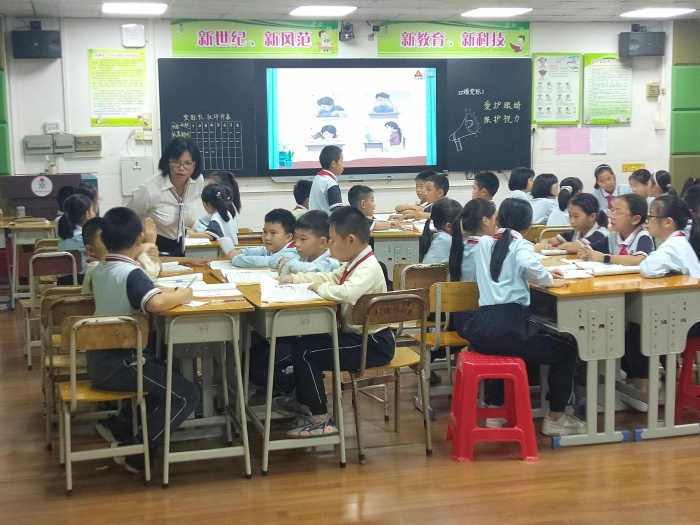 2020年11月4日下午第一節(jié)課,語文科組齊聚錄播室集中聽課。陳秀珠老師給大家?guī)聿烤幇嬲Z文四年級上冊第三單元口語交際《愛護(hù)眼睛,保護(hù)視力》的課例展示。