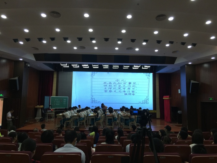 當(dāng)天早上共有兩節(jié)課例,分別是林燕妮老師的語文課例《示兒》與羅燕紅老師的書法課例《木字旁》。林老師以“心心念念的事情”為話題導(dǎo)入,引導(dǎo)學(xué)生在古詩學(xué)習(xí)中深入感悟詩人的情感,并結(jié)合語文園地當(dāng)中的“書寫提示”訓(xùn)練,在語文課中融合了硬筆書法的書寫指導(dǎo),給人耳目一新的感覺。羅老師則是完整地示范了一節(jié)毛筆書法課的教學(xué)過程。羅老師專業(yè)知識豐富,用讀帖的方式引導(dǎo)學(xué)生觀察字形和搭配變化,循循善誘,引導(dǎo)學(xué)生寫好“相、杖、柱”三個毛筆字。
