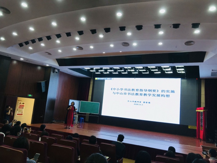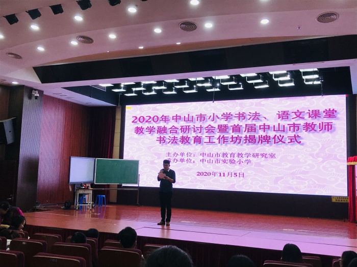 打印 |為加強(qiáng)中山市書法精品課程研用結(jié)合,推動中小學(xué)書法教學(xué)與小學(xué)語文書寫教學(xué)課堂融合實(shí)踐,突破跨學(xué)科教改難點(diǎn),提高中山市中小學(xué)生書寫和書法水平,探索基于書法教育工作坊與中小學(xué)書法、小學(xué)語文寫字教研的新路徑,11月5日上午,中山市教育教學(xué)研究室特舉辦2020年中山市小學(xué)書法、語文課堂教學(xué)融合研討活動暨首屆中山市教師書法教育工作坊揭牌儀式。鎮(zhèn)南小學(xué)的郭淑玲老師參加了此次活動。