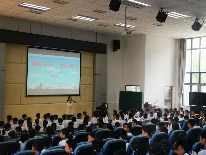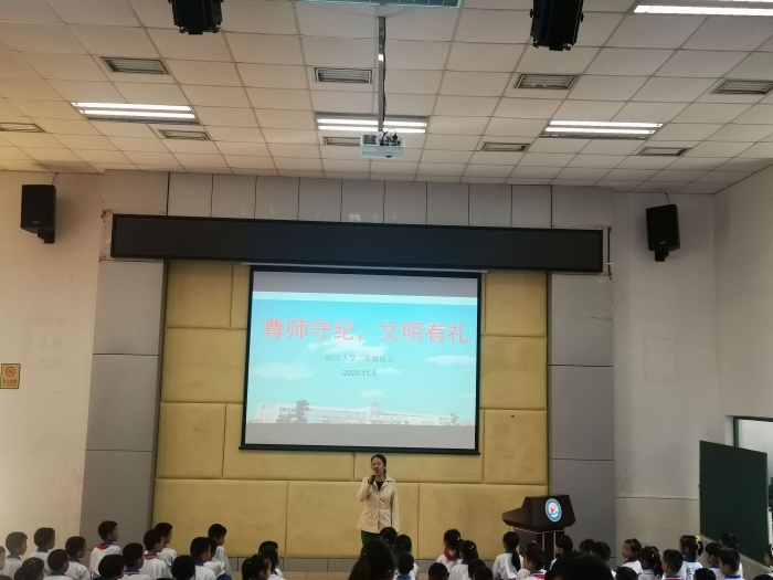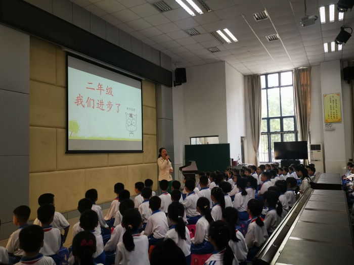 接著,賀老師也提出了二年級(jí)的學(xué)生們需要改進(jìn)的地方,如見到老師沒有打招呼、書面作業(yè)潦草、沒有按要求穿校服、上學(xué)早到或遲到、課間追逐打鬧、離開教室沒有移好桌椅、沒有關(guān)好電燈風(fēng)扇以及投影,教室座位有垃圾、柜筒不整潔,放學(xué)沒有在等候區(qū)等候家長、到處玩鬧等等,并為二年級(jí)的學(xué)生們進(jìn)一步提出了要求和建議。