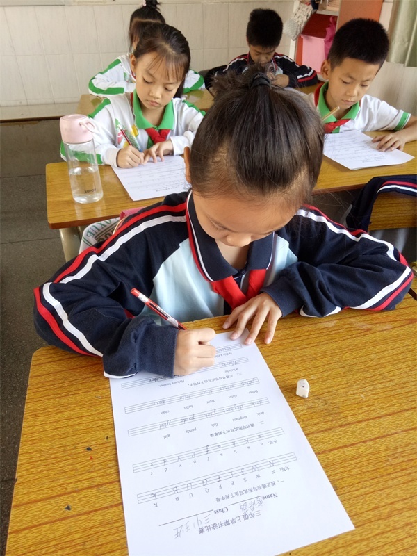 為規(guī)范同學們的書寫,比賽要求同學們用手寫體書寫每一個字母。在比賽過程中,同學們認真對待,發(fā)揮出自己最好水平。監(jiān)考的老師還對同學們寫字的正確坐姿和書寫的正確方法進行提醒監(jiān)督,以便養(yǎng)成良好的書寫習慣。
