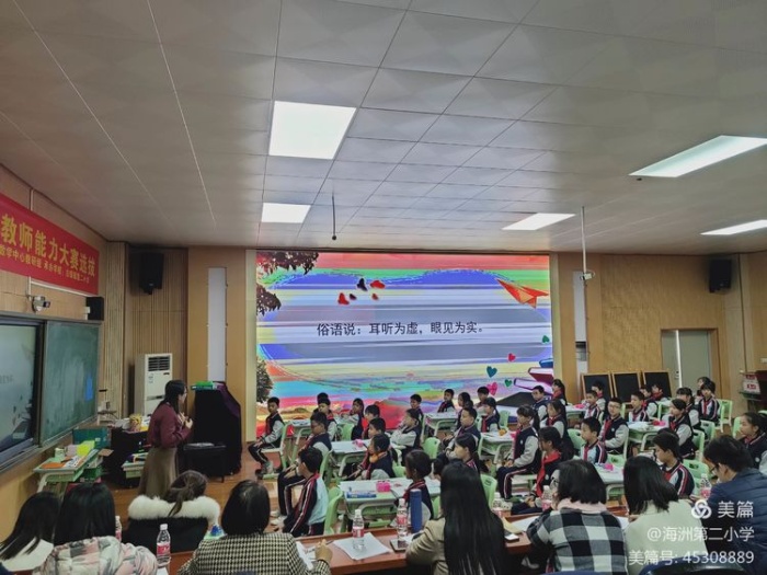 海洲第二小學(xué)的袁燕嫦老師參賽的課題是四年級(jí)下冊(cè)的《觀察物體》。她結(jié)合小組合作的教學(xué)模式,引導(dǎo)學(xué)生自主學(xué)習(xí)探索新知,結(jié)合視頻、實(shí)物、教具等讓學(xué)生直觀感受觀察物體,深化大教學(xué)觀小組合作的教育教學(xué)改革,在課堂上利用教學(xué)藝術(shù),充分調(diào)動(dòng)學(xué)生學(xué)習(xí)積極性,展示了新穎的教學(xué)方法。課堂氛圍生動(dòng)活潑,取得良好教學(xué)效果。