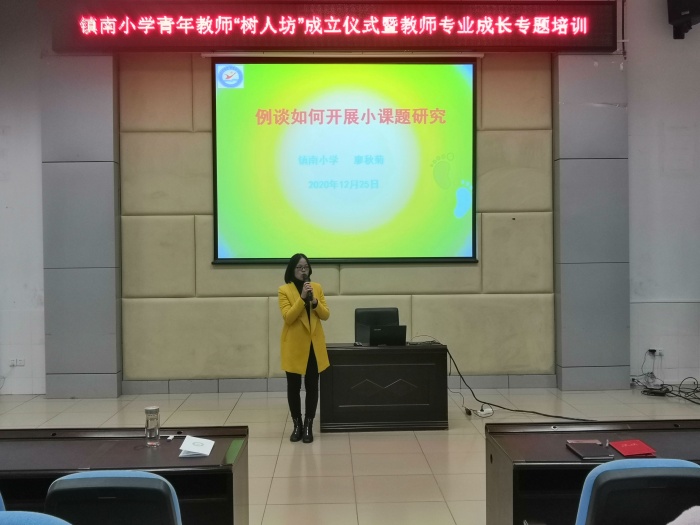 “樹人坊”成立儀式結束后,廖秋菊副校長做了《例談如何開展小課題研究》的專題培訓講座。廖校長先對開展課題研究的重要意義進行深刻闡釋,她提到,課題能真正解決我們在教育教學中遇到的難題,真正促進我們教育行為的改善和教師的專業(yè)成長。隨后,廖校長介紹了當前市、鎮(zhèn)教科研課題的要求和方向,并鼓勵青年教師以備課組或個人組建團隊形式開展小課題研究。為使青年教師更直觀了解小課題該如何研究,廖校長以多個課題為案例進行細致講解,使老師們對小課題的研究方法有了更深入的認識和理解,為以后積極踏上課題研究之路打下堅實的基礎。