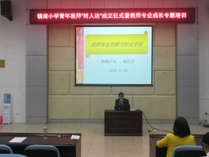 打印 |為促使青年教師在較短時間內適應教育崗位的基本要求,實現師德、教學藝術和教育管理能力的同步提高,進而促進教師專業(yè)化成長,12月25日,古鎮(zhèn)鎮(zhèn)鎮(zhèn)南小學成立了青年教師“樹人坊”,在報告廳舉行了成立儀式,并以此為契機,開展了教師專業(yè)成長專題培訓活動。參加本次活動由劉曉嵐副主任主持,楊紅衛(wèi)校長、廖秋菊副校長、部分行政領導、科組長及2014年后新進教師參加了此次活動。