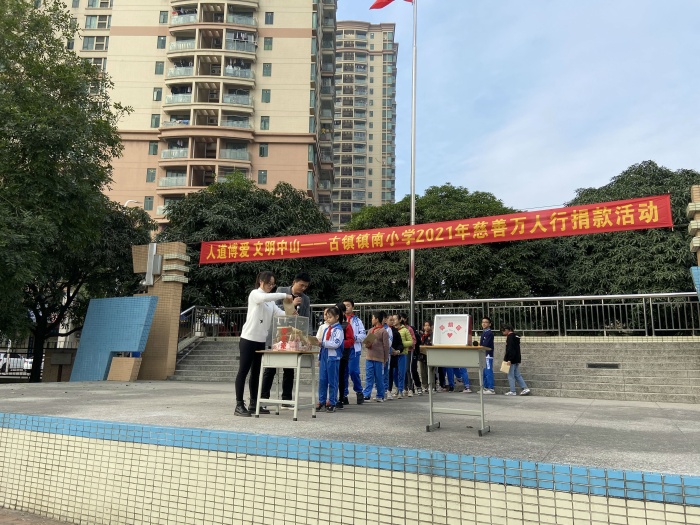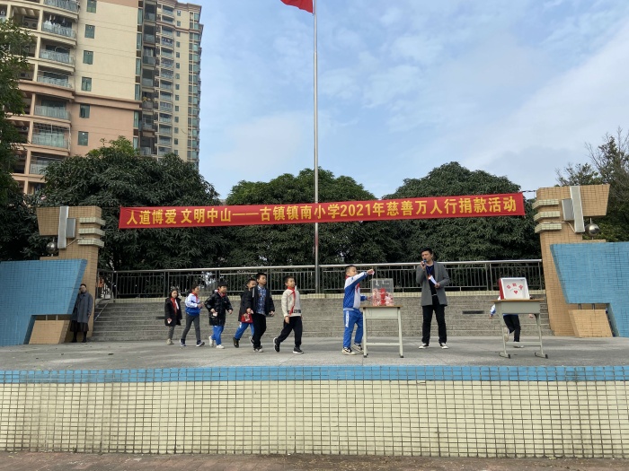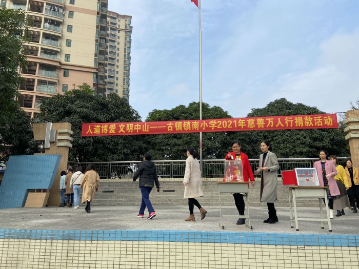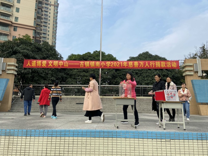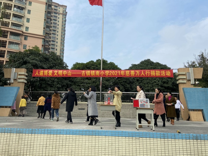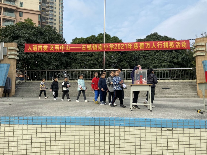 打印 |為發(fā)揚(yáng)慈善博愛(ài)的傳統(tǒng),弘揚(yáng)無(wú)私奉獻(xiàn)的精神,促進(jìn)社會(huì)各項(xiàng)事業(yè)的進(jìn)步,建設(shè)幸福和美的中國(guó)燈飾之都。中山市古鎮(zhèn)鎮(zhèn)紅十字會(huì)、古鎮(zhèn)慈善會(huì)向全鎮(zhèn)人民發(fā)出主題為“人道博愛(ài),文明中山——為新古鎮(zhèn)人民醫(yī)院建設(shè)添磚加瓦”的公益籌款活動(dòng)倡議,鎮(zhèn)南小學(xué)積極響應(yīng)號(hào)召,于12月24日進(jìn)行了慈善萬(wàn)人行捐款活動(dòng)。
