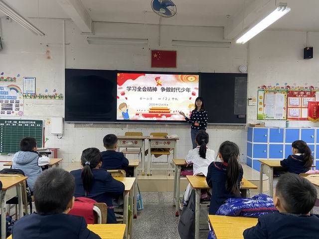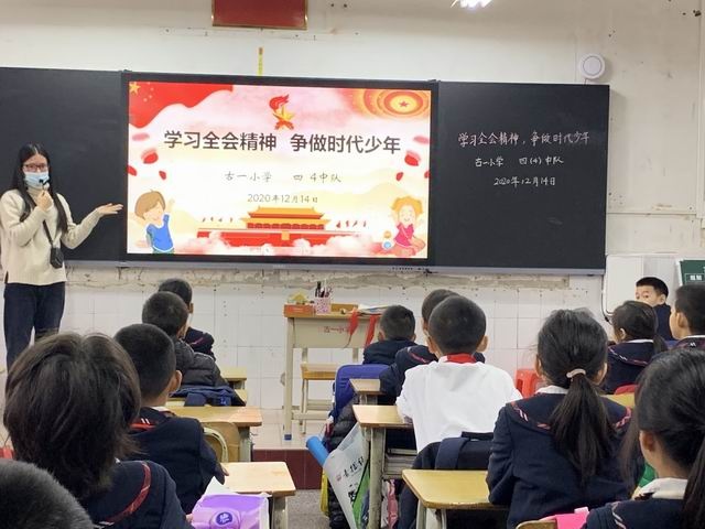 為了進(jìn)一步讓隊(duì)員們感受現(xiàn)在的生活是來之不易的,學(xué)習(xí)珍惜現(xiàn)在,逐夢未來。升旗儀式完畢后,各中隊(duì)回到教室繼續(xù)深入學(xué)習(xí)會議的精神和內(nèi)涵,開展“學(xué)習(xí)全會精神,爭做時(shí)代少年”的主題隊(duì)會,讓會議的精神都內(nèi)化在每位隊(duì)員心中。隊(duì)員們在班會上暢所欲言,謀劃我國未來的發(fā)展的藍(lán)圖。