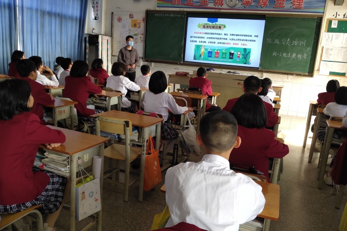 李老師首先讓學(xué)生以小組為單位交流對垃圾分類的認(rèn)識,然后結(jié)合學(xué)生代表發(fā)言和PPT圖片講解有關(guān)知識,上述環(huán)節(jié)后,學(xué)生們認(rèn)識到了垃圾是由人類日常生活和生產(chǎn)中產(chǎn)生不被需要或無用的固體、流體物質(zhì)。生活垃圾分類關(guān)系人民群眾日常生活,對于推動生態(tài)文明建設(shè)、提升社會文明程度、創(chuàng)新基層社會治理都有著重要意義。