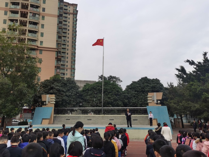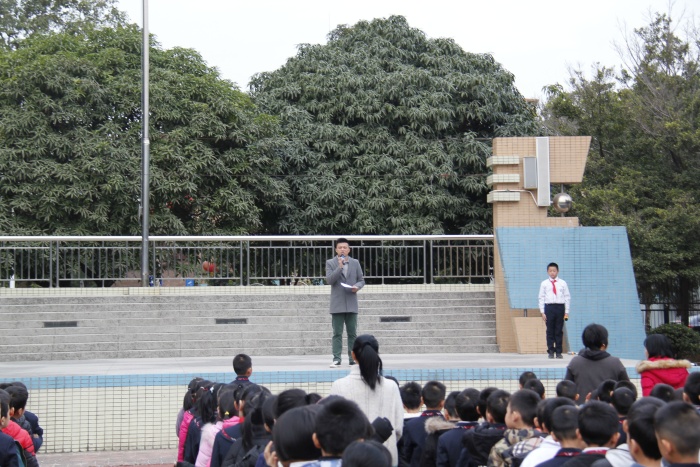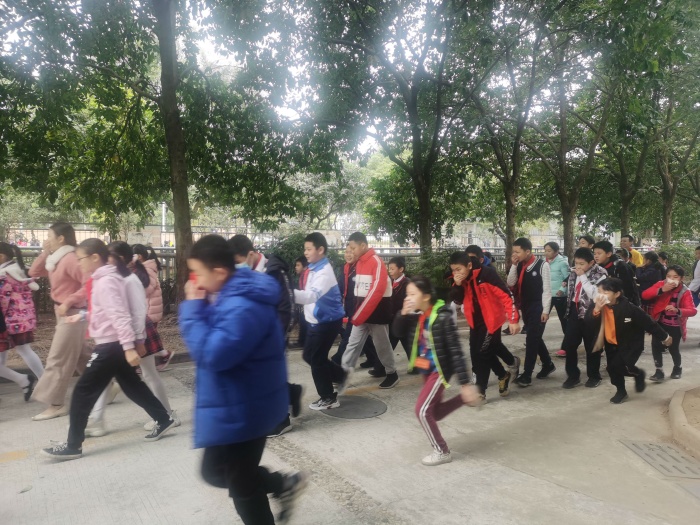 隨著應(yīng)急警報(bào)鈴聲的響起,演練正式開始。各年級(jí)負(fù)責(zé)人及各樓層值日老師第一時(shí)間迅速到崗,協(xié)助學(xué)生隊(duì)伍快速、有序的撤離,各任課教師、班主任正確指導(dǎo)學(xué)生,都能按要求彎腰,雙手捂嘴,跟著隊(duì)伍迅速撤離到安全的位置。從警報(bào)響起到兩千余名師生全部撤退到操場,總共用時(shí)不超過十分鐘。整個(gè)過程,師生都能做到有秩序、行動(dòng)快速,配合默契,沒有出現(xiàn)混亂的場面。然后,本次消防演練總指揮梁耀倫副校長講進(jìn)行了以“消防安全”為主題的講話,梁副校長給同學(xué)們提出了六點(diǎn)建議,呼吁大家增強(qiáng)防范意識(shí),提升自我保護(hù)能力,關(guān)注消防安全,關(guān)愛生命。
