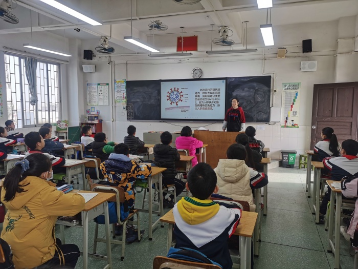 活動(dòng)中,班主任們從病毒傳播途徑、感染病毒癥狀、如何做好個(gè)人防護(hù)等方面進(jìn)行講解。在指導(dǎo)個(gè)人防護(hù)措施時(shí),班主任們還不時(shí)邀請(qǐng)同學(xué)們當(dāng)“小老師”,為大家示范“七步洗手法”,糾正大家佩戴口罩時(shí)的常見(jiàn)錯(cuò)誤。在主題班會(huì)上,同學(xué)們還一起觀看了疫情相關(guān)視頻,感受疫情故事,隨后由各班派學(xué)生代表主講,小組討論發(fā)言,最后由班主任進(jìn)行總結(jié)。輔導(dǎo)員老師積極引導(dǎo)同學(xué)們向勇敢的“逆行者”學(xué)習(xí),長(zhǎng)大后成為心有大愛(ài),有責(zé)任擔(dān)當(dāng)?shù)娜耍?/p>