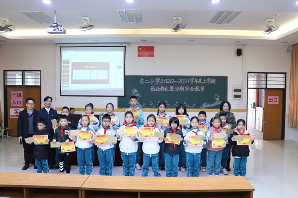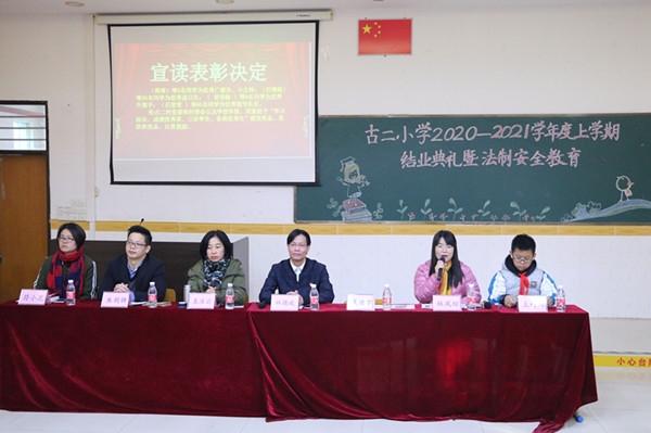 打印 |光陰似箭,時光如梭。轉眼間,繁忙緊張的一學期就要悄然離去,孩子們也迎來了期盼已久的寒假生活。2021年1月15日上午,古鎮(zhèn)鎮(zhèn)古二小學舉行了2020學年度上學期結業(yè)典禮暨法制安全教育活動,為一個學期的學習生活畫上完美的句號。