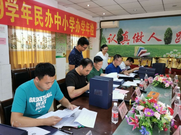 為促進(jìn)民辦學(xué)校依法辦學(xué),不斷改善辦學(xué)條件,全面提高教育教學(xué)質(zhì)量,促進(jìn)民辦學(xué)校健康發(fā)展,2020年7月10日上午,橫欄鎮(zhèn)教育事務(wù)指導(dǎo)中心黃軼鹍、楊慧才兩位專(zhuān)干帶領(lǐng)鎮(zhèn)其他學(xué)校行政一行6人,到華文學(xué)校進(jìn)行2019年中山市民辦中小學(xué)年檢評(píng)估工作。謝春生校長(zhǎng)帶領(lǐng)全體行政迎接本次評(píng)估檢查。