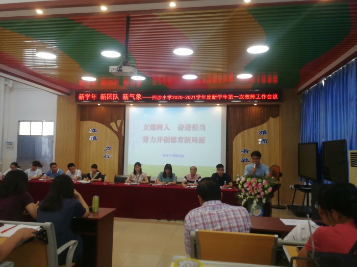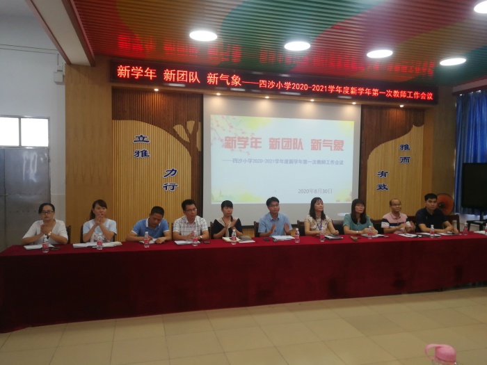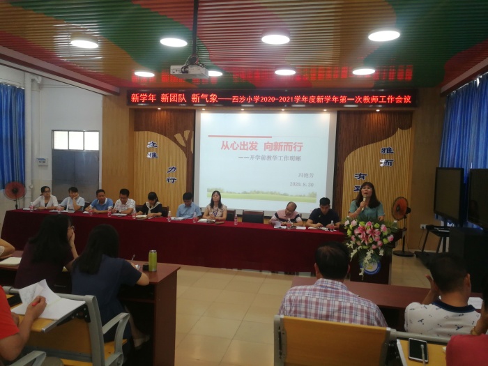 8月30日上午,四沙小學(xué)在階梯室召開了“新學(xué)年 新團(tuán)隊(duì) 新氣象”為主題的2020-2021學(xué)年度第一次教師工作會議。全體行政和教師參加了會議。會議主要由校長歐慧芳、副校長馮艷芳、盧福棠就相關(guān)的工作進(jìn)行了布置和安排。