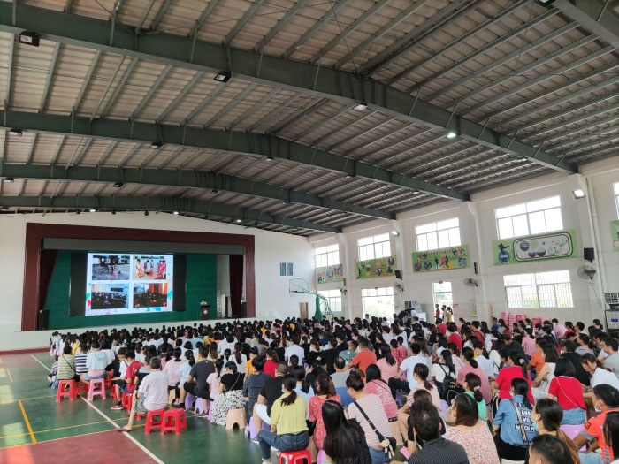 本次培訓(xùn)分為學(xué)生和家長兩大部分同時進(jìn)行。一年級的新生們來到了各自的教室,認(rèn)識了老師,也結(jié)識了新朋友,學(xué)會了端坐、立正、舉手發(fā)言等課堂常規(guī)。在老師的帶領(lǐng)下同學(xué)們還進(jìn)行了日常隊列訓(xùn)練,排著隊去“吃飯”、去“廁所”“上學(xué)”、“放學(xué)”。同時家長們也齊聚體育館進(jìn)行“入學(xué)培訓(xùn)”。培訓(xùn)會由教務(wù)處黃麗芬副主任主持,她代表學(xué)校與全體老師對參加活動的家長們致以了衷心的感謝與熱烈的歡迎。培訓(xùn)會首先由德育處黃麗君副主任就學(xué)校的辦學(xué)理念、特色進(jìn)行了闡述,并詳細(xì)地講解了新生入學(xué)后的日常德育常規(guī)的養(yǎng)成教育。接著教務(wù)處梁洪華主任對教學(xué)常規(guī)和學(xué)習(xí)習(xí)慣養(yǎng)成作了精彩的分享,最后他希望全體家長密切配合學(xué)校工作,這樣才能實(shí)現(xiàn)教育的合力雙贏。