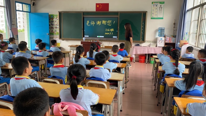 隨后,學校教師代表賈如意副校長和學生代表六(4)班劉啟程同學進行了慶祝教師節(jié)國旗下講話,開啟了“金秋九月頌師恩”活動。賈校長講到教師一生平凡卻甘于平凡,一世艱辛卻樂于奉獻,他們是文明的使者,是辛勤的園?。徊⑻栒偃w同學弘揚尊師重教、感念師恩的美德,在全班、全校、全社會營造人人尊師愛師的良好氛圍,從身邊點點滴滴做起,熱愛老師、關心老師、尊敬老師,并祝所有教師節(jié)日快樂、工作順利。劉啟程同學表示飲其流者懷其源,學有成時念吾師;老師詮釋著愛與奉獻,用粉筆詮釋著教書育人的道路,而學生們則用心詮釋著對老師的尊敬和感恩。最后,各班主任在班上開展了主題班會,通過精美的圖片、溫情的講解讓學生再一次感受這個平凡而又偉大的職業(yè)——教師。學生們紛紛表示“一日為師,終身為父”,要時刻牢記老師教誨,在校做一名優(yōu)秀的小學生,在家做一名聽話的好孩子。