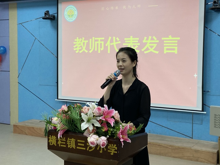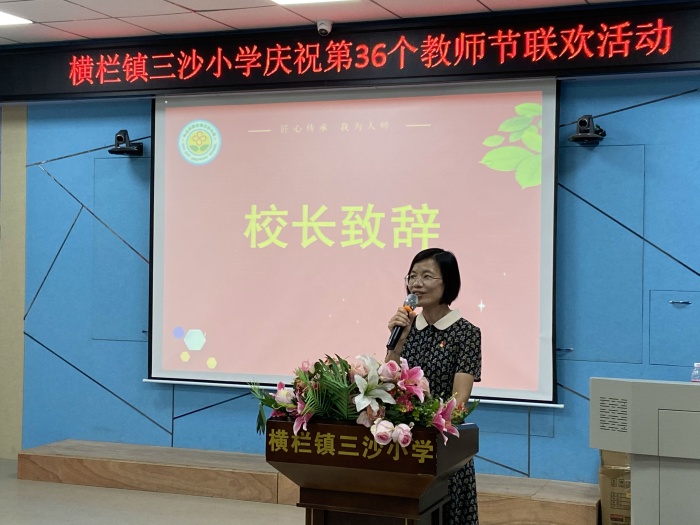 隨后,三沙小學(xué)馮紅燕校長上臺致辭。馮校長在致辭中代表學(xué)校祝全體教師節(jié)日快樂,向在百忙中親臨學(xué)校送來節(jié)日問候的領(lǐng)導(dǎo)們表示熱烈的歡迎和衷心的感謝,向一直以來對學(xué)校工作鼎力支持的三沙村委表示感謝,并要求三沙小學(xué)全體教師要認真按鎮(zhèn)黨委馮金怡書記的囑托,努力在以下幾個方面做得更好:要堅守教師的道德與情操,做學(xué)生美好靈魂的塑造者;要胸懷教育的責任與追求,做傳道授業(yè)解惑的引路人;要鉆研教學(xué)的理念和方法,做改革發(fā)展創(chuàng)新的踐行者。