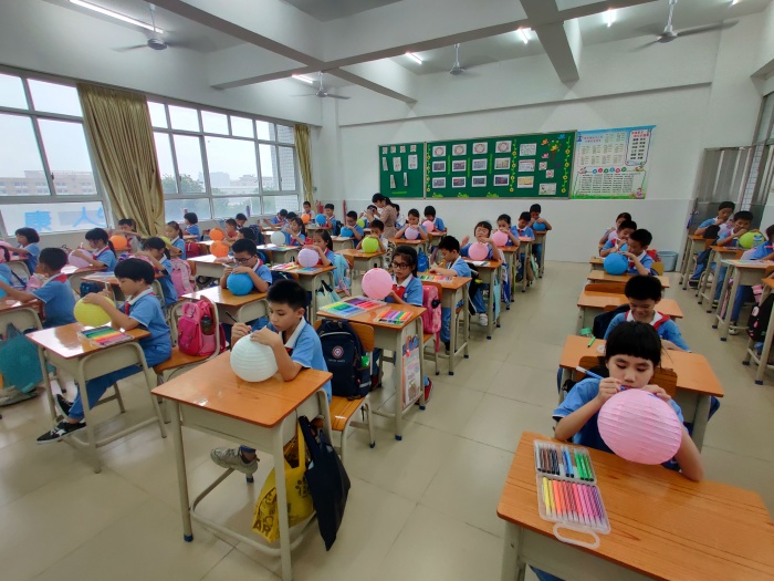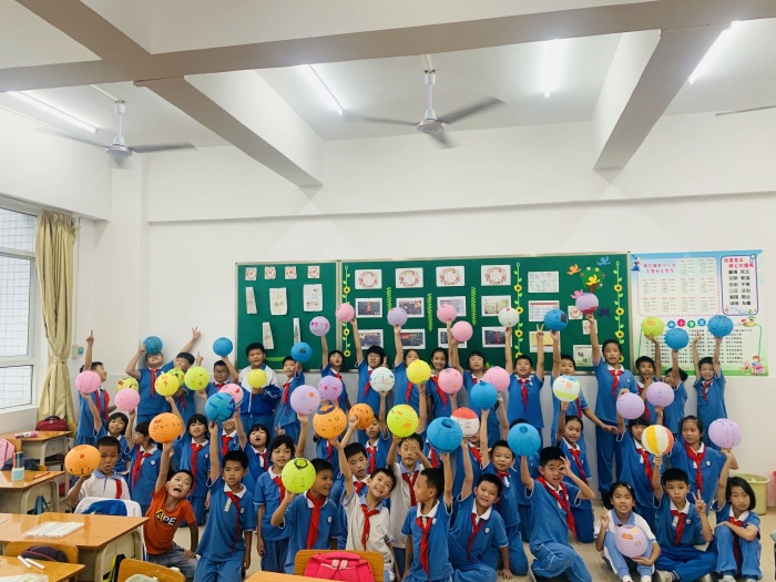 當(dāng)天下午第三節(jié)課四沙小學(xué)分級舉行了豐富多彩的雙節(jié)慶?;顒?。一年級舉行了親子燈籠制作活動,二年級舉行同唱國歌活動,中年級開展“與國旗合影”活動,高年級則舉行“祖國,祝您生日快樂!”主題征文活動。