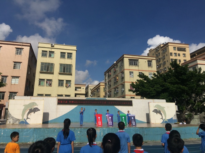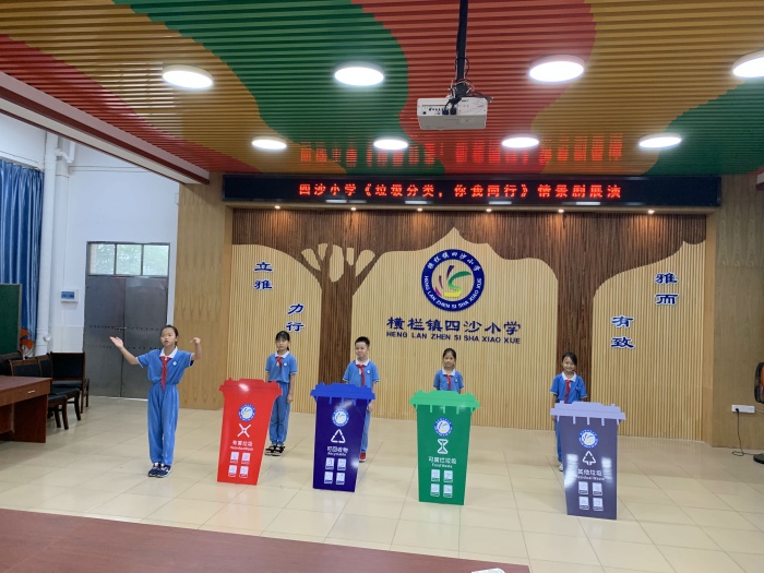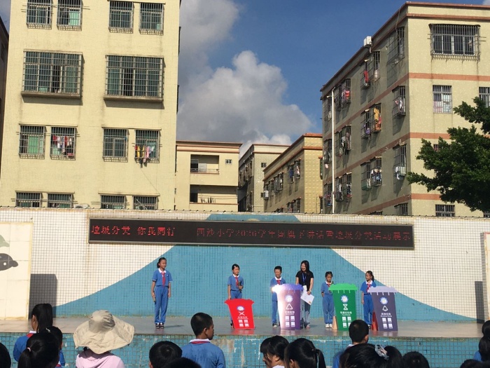垃圾分類工作是創(chuàng)建文明城市的重要一環(huán)。為努力推進(jìn)四沙小學(xué)垃圾分類工作,樹立綠色低碳、環(huán)保的生活理念,美化居住環(huán)境,減少污染,變廢為寶,9月30日上午,四沙小學(xué)利用大課間時(shí)間,全體師生一同集中田徑場(chǎng)觀看《垃圾分類,你我同行》情景劇。