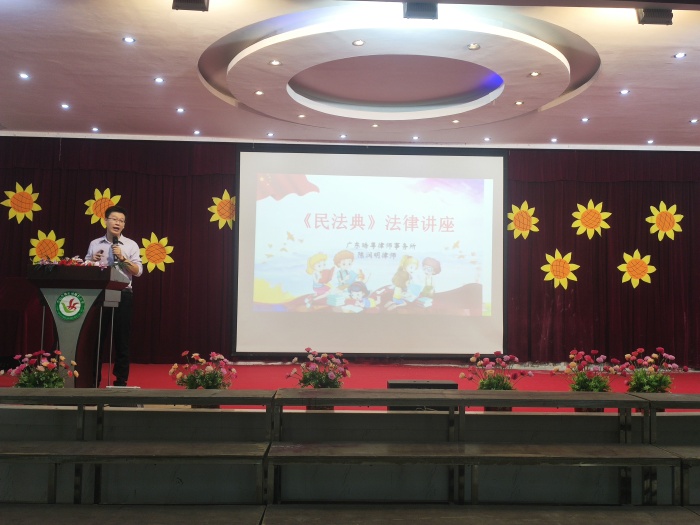 打印 |2020年5月28日15時08分,十三屆全國人大三次會議表決通過了《中華人民共和國民法典》,宣告中國“民法典時代”正式到來,并于2021年1月1日起正式施行。為深入、有效地開展《中華人民共和國民法典》學習宣傳活動,2020年10月16日下午,橫欄小學邀請了廣東皓粵律師事務(wù)所律師陳潤明作為《民法典》宣傳教育的宣講人,開展以“學習《民法典》,迎接新時代”為主題的民法典宣傳教育。