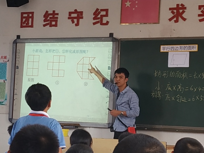 這次教研活動先由新教師羅勇執(zhí)教了《平行四邊形的面積》,展示了高效情趣數(shù)學(xué)課堂。課前,經(jīng)過多次充分試教,師徒結(jié)對全程參與精心打造,羅老師采用新穎、靈活的教學(xué)方法充分調(diào)動學(xué)生參與課堂的積極性,提高課堂教學(xué)的高效性;他上課思路清晰、條理清楚,尤其是導(dǎo)學(xué)稿的設(shè)計受到各位老師的好評,也達到了本校內(nèi)強素質(zhì)外樹形象的目標(biāo)。