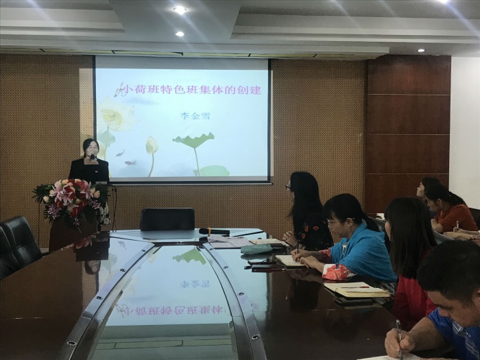 隨后,李金雪老師分享創(chuàng)建“小荷班”的歷程,她從找準優(yōu)勢,創(chuàng)建小荷特色班級,優(yōu)化班級環(huán)境,營造小荷育人文化班級氛圍,并充分開展各種各樣的活動,讓學生在活動中學習與成長。
