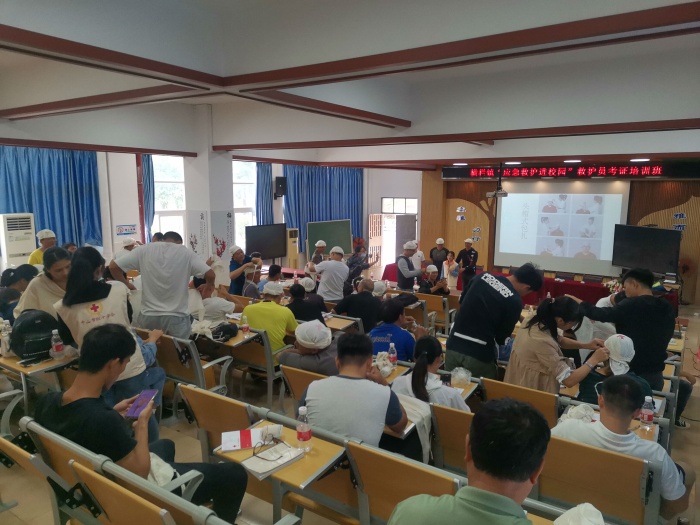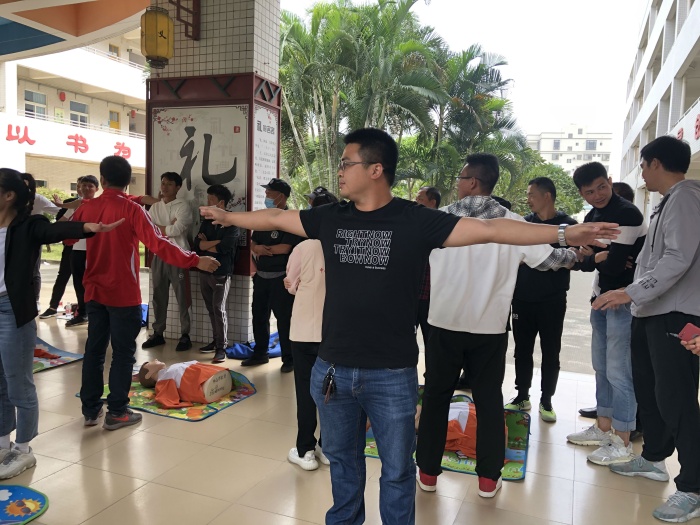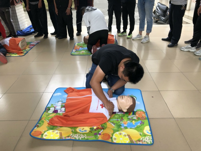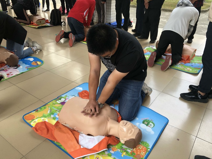 活動開始,中山市紅十字會老師給大家發(fā)放了急救用品,并介紹了使用方法。隨后,紅十字會專職培訓(xùn)老師結(jié)合理論知識和實(shí)際救護(hù)技巧對生活中遇到突發(fā)狀況急救、徒手心肺復(fù)蘇、溺水緊急救護(hù)等內(nèi)容作了詳細(xì)的講解。培訓(xùn)老師和參會的老師們在現(xiàn)場展開了有趣又令人印象深刻的互動,使大家對各項(xiàng)救護(hù)技巧有了深入的了解和認(rèn)識。課程的最后,培訓(xùn)老師還開展了考核。兩天培訓(xùn)的考核不僅有筆試還有實(shí)際操作,通過考核大家能夠化理論為實(shí)踐,更好地掌握知識要領(lǐng)。