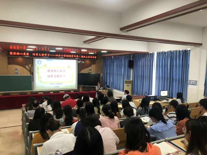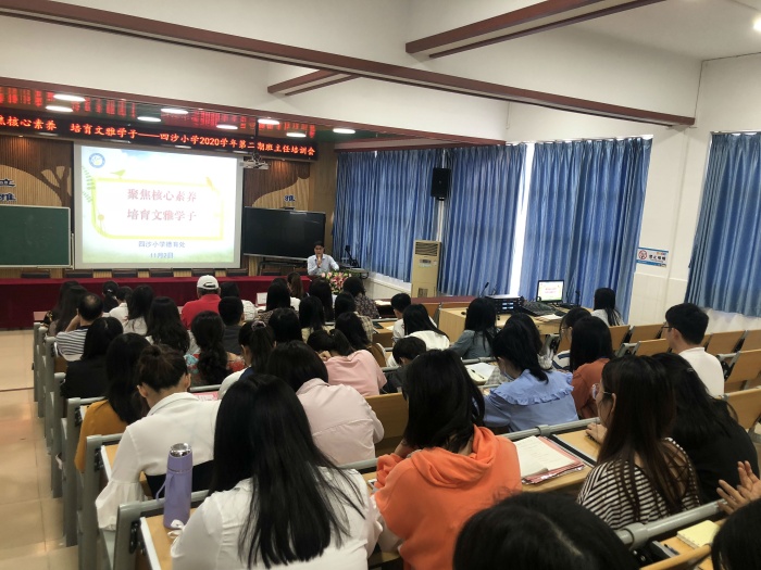 打印 |為了讓班主任進一步了解學生發(fā)展核心素養(yǎng)的三個方面、六大素養(yǎng)和十八個基本要點,全面落實學校培育文雅學子的工作目標,經(jīng)學校德育處籌劃, 11月2日上午,四沙小學在階梯室舉行了題為“聚焦核心素養(yǎng) 培育文雅學子”班主任培訓會。