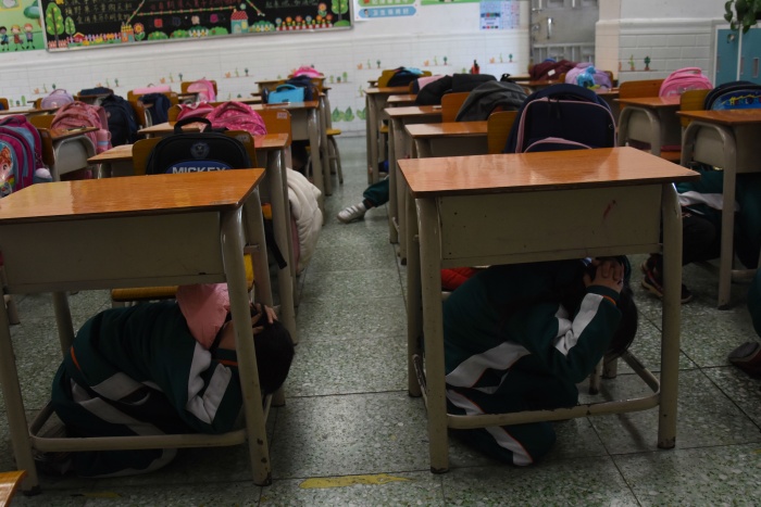 一聲急促的警報(bào)聲拉開(kāi)了“安全疏散演練”活動(dòng)帷幕,聽(tīng)到安全避險(xiǎn)警報(bào)聲,各位老師立即到達(dá)指定崗位,正在上課的學(xué)生聽(tīng)到地震預(yù)警后,在班主任的指導(dǎo)下迅速鉆進(jìn)課桌下進(jìn)行緊急避險(xiǎn)。震波過(guò)后,隨著一陣尖銳而又急促的緊急疏散聲響起,學(xué)生在老師的指揮下,雙手抱頭、彎腰,迅速、有序、安全地從教室向操場(chǎng)轉(zhuǎn)移。演練期間,老師和同學(xué)們認(rèn)真對(duì)待,組織有序,無(wú)擁擠、推搡、打鬧現(xiàn)象,整個(gè)演練過(guò)程緊張而不慌亂。