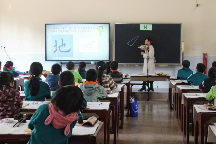 本次教研活動(dòng)分為兩部分。先由黃垚老師和黃瑤敏老師分別給大家?guī)?lái)一節(jié)美術(shù)課《奇妙的建筑》和書法課《提》。黃垚老師的教學(xué)思路非常清晰流暢,她的教學(xué)設(shè)計(jì)新穎有趣,課堂氣氛活躍,注重培養(yǎng)學(xué)生的想象力和動(dòng)手表現(xiàn)能力。黃瑤敏老師的書法課重點(diǎn)講解了“提”的用筆方法和“地”字的結(jié)構(gòu)特點(diǎn),她精心設(shè)計(jì)每一個(gè)環(huán)節(jié),由淺入深,層層遞進(jìn),學(xué)生活學(xué)活用,課堂處處顯精彩。