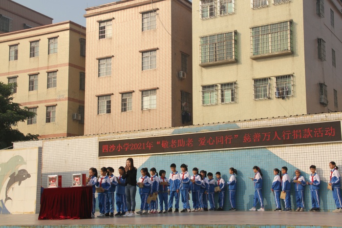 打印 |為貫徹落實(shí)《橫欄鎮(zhèn)2021年慈善萬人行活動(dòng)方案》精神,弘揚(yáng)中華民族傳統(tǒng)美德,廣泛營(yíng)造“人道、博愛、奉獻(xiàn)”的行善氛圍,12月28日上午,四沙小學(xué)組織全校師生在田徑場(chǎng)上舉行了“敬老助老 愛心同行”2021年慈善萬人行捐款活動(dòng)。