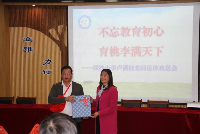 打印 |為營造尊師重教氛圍,鼓勵(lì)老師們做一個(gè)幸福的老師,12月21日,四沙小學(xué)舉行了盧滿枝老師退休歡迎活動(dòng)?;顒?dòng)分兩場舉行。