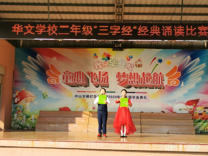 12月1日舉行了二年級(jí)誦讀經(jīng)典《三字經(jīng)》,12月2日舉行了一年級(jí)誦讀經(jīng)典《弟子規(guī)》。活動(dòng)中,各班級(jí)展開激烈角逐,精心表演著各自準(zhǔn)備好的節(jié)目,從入場(chǎng)、隊(duì)列、表演、誦讀到退場(chǎng),各個(gè)環(huán)節(jié)井然有序,每個(gè)班級(jí)都各有特色,充分展現(xiàn)了華文學(xué)校“一班一特色、一校一亮點(diǎn)”的班級(jí)文化和校園文化。同學(xué)們精神飽滿地演繹這千古名篇,再現(xiàn)了中華民族優(yōu)秀古詩(shī)文博大豐富的內(nèi)涵、崇高的思想境界和特有的藝術(shù)魅力。這些可愛的萌娃們?cè)诎嘀魅蔚闹笇?dǎo)下,或誦讀、或吟唱,再結(jié)合快板、舞蹈等現(xiàn)代表演形式,配上了美輪美奐的服裝和悠揚(yáng)動(dòng)聽的背景音樂,把詩(shī)文的意境表現(xiàn)得淋漓盡致,叫人贊不絕口!