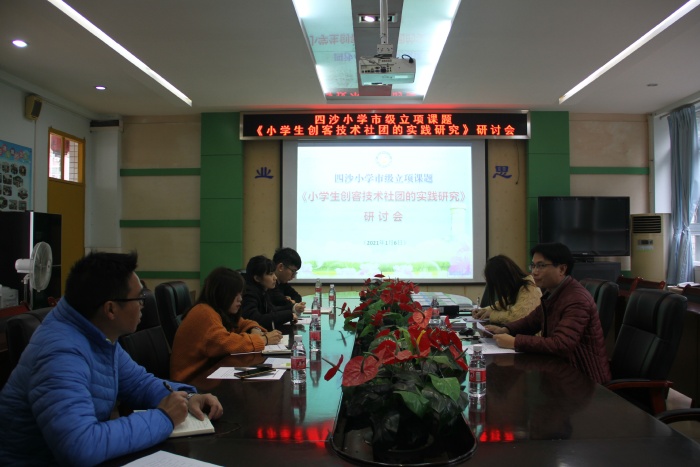 打印 |2021年1月6日上午,四沙小學(xué)市級(jí)立項(xiàng)課題《小學(xué)創(chuàng)客技術(shù)社團(tuán)的實(shí)踐研究》研討會(huì)在學(xué)校會(huì)議室召開。研討會(huì)由課題主持人盧福棠副校長主持。